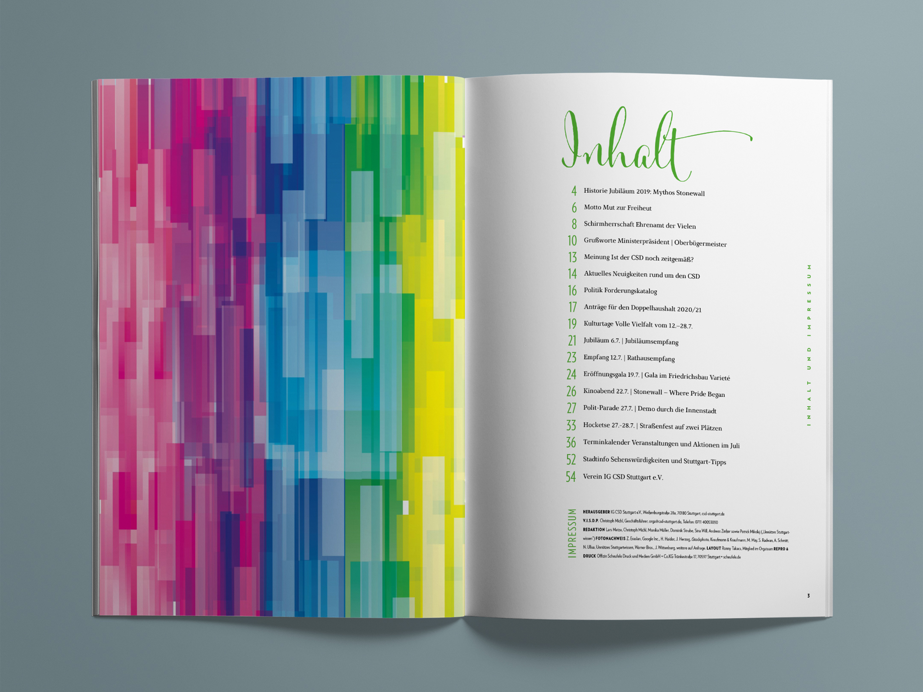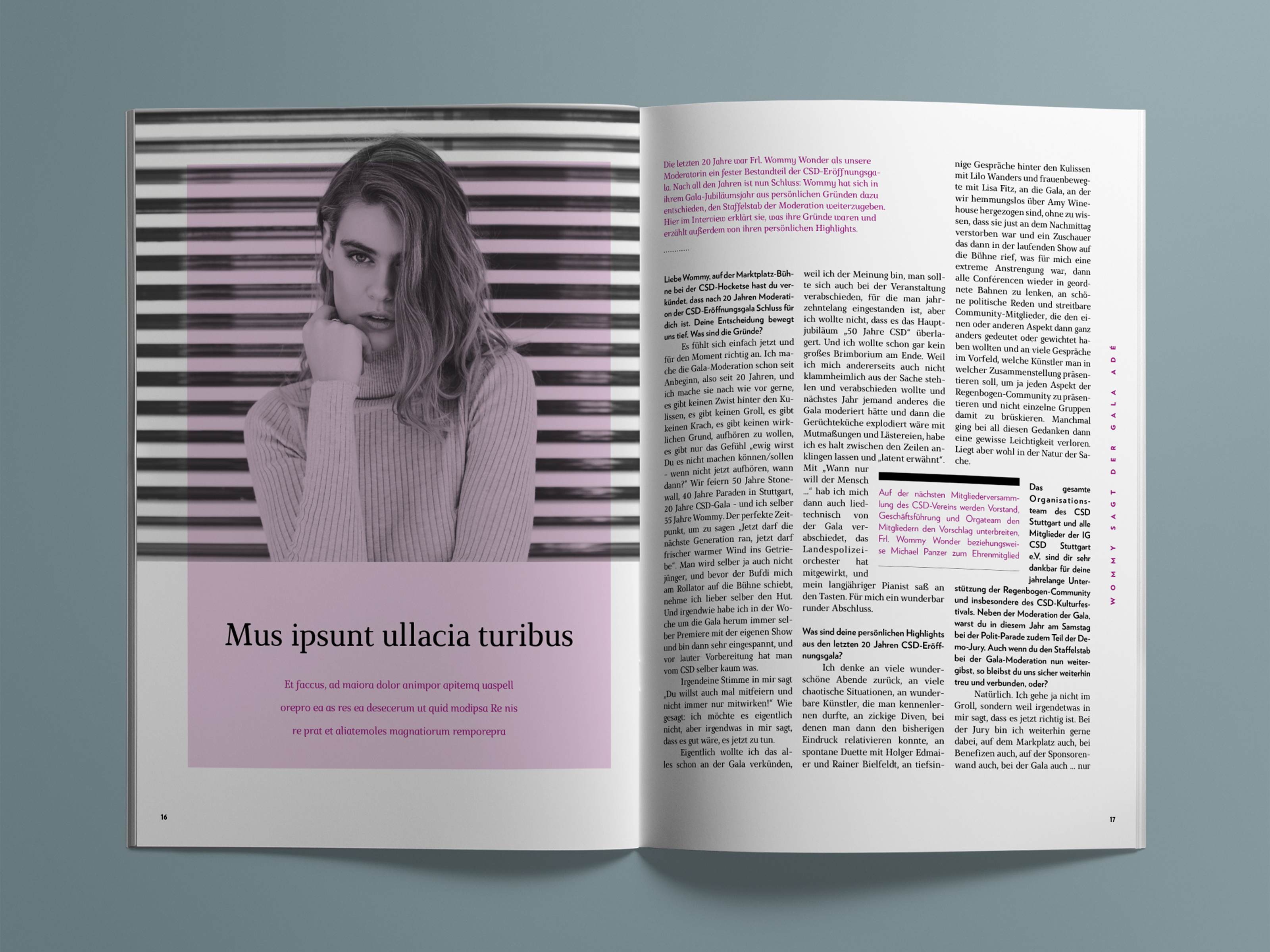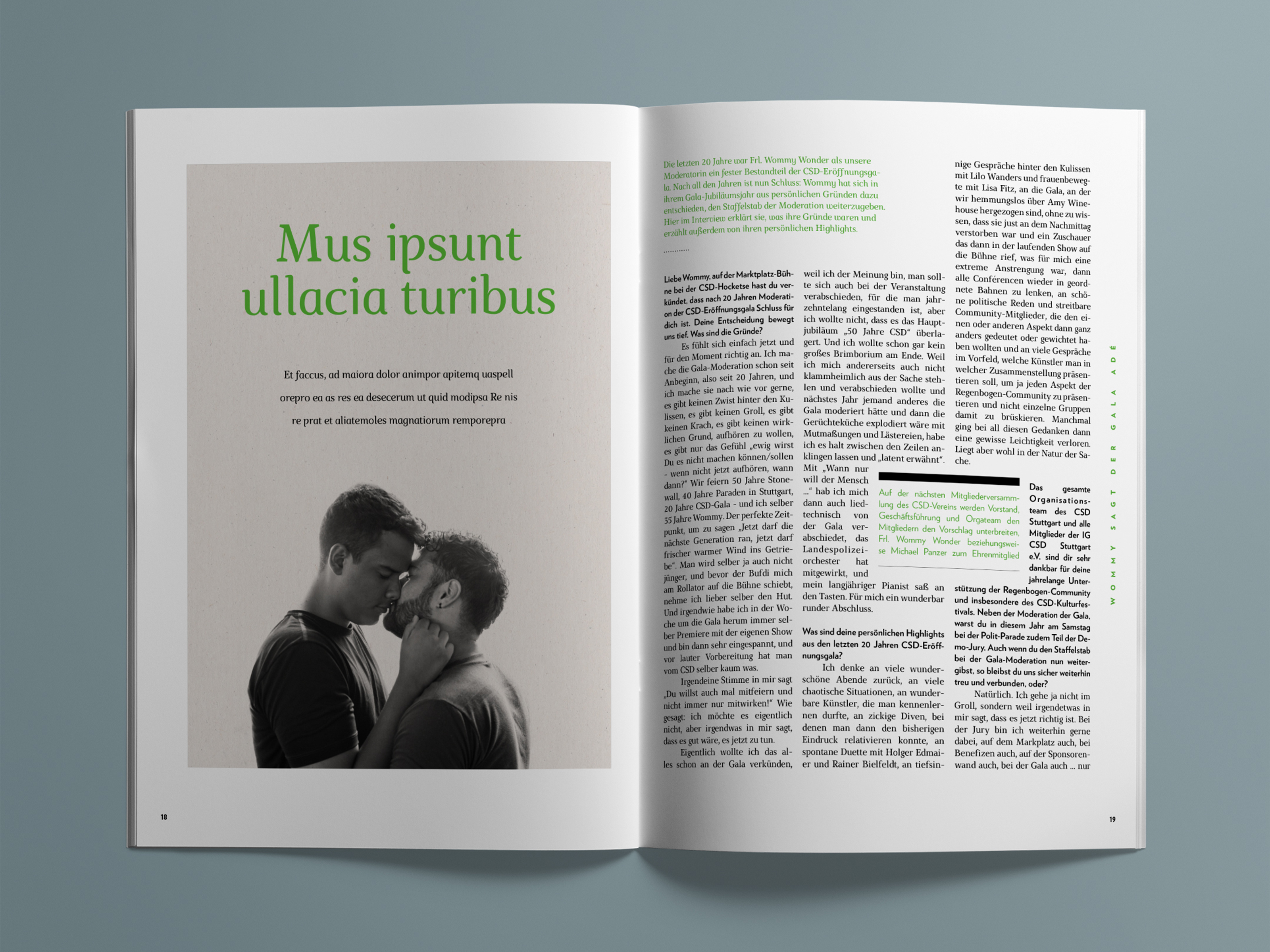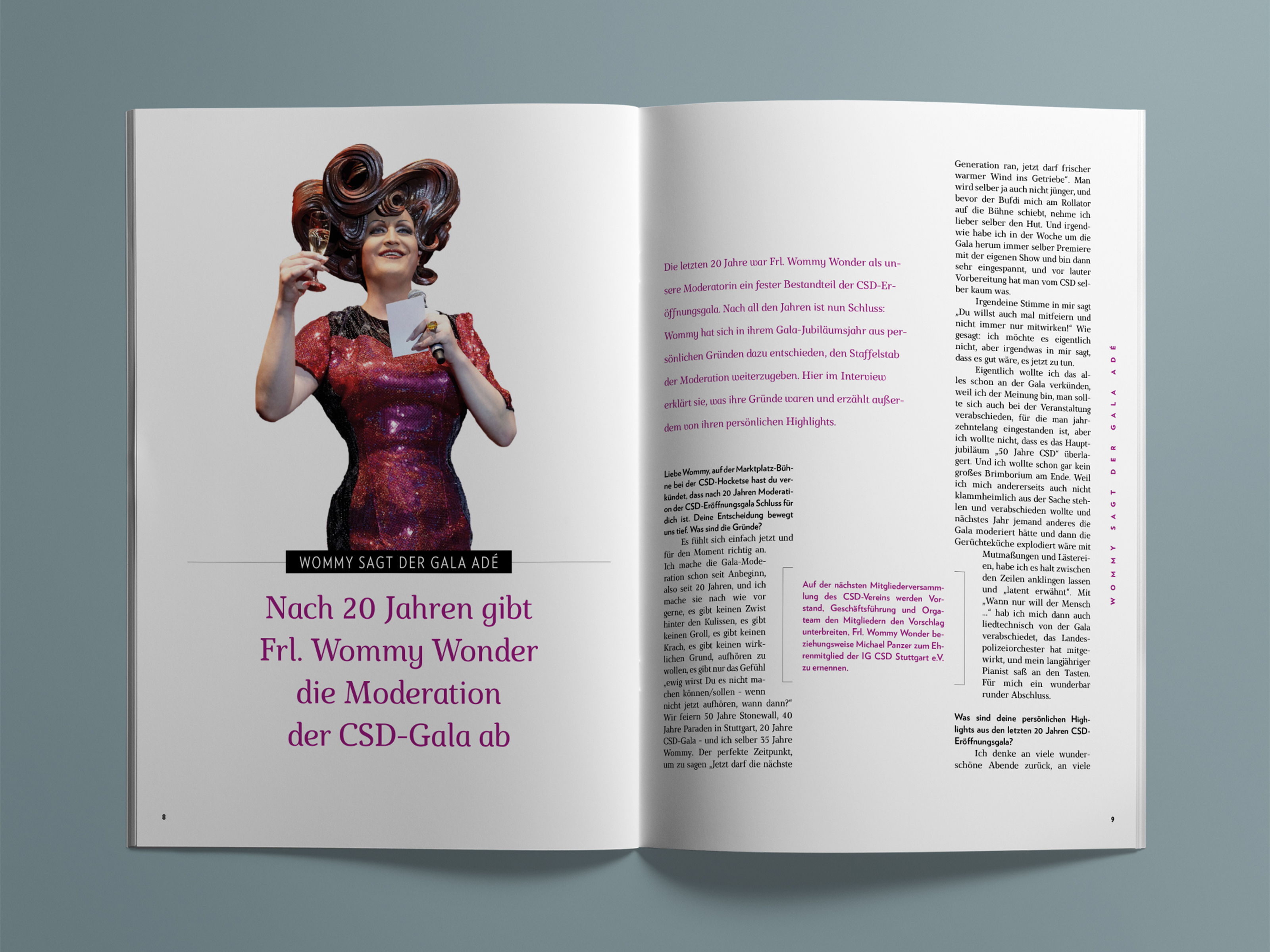 Leider nie umgesetzte Vorschläge für ein Magazin, das die IG CSD Stuttgart regelmäßig veröffentlichen wollte.